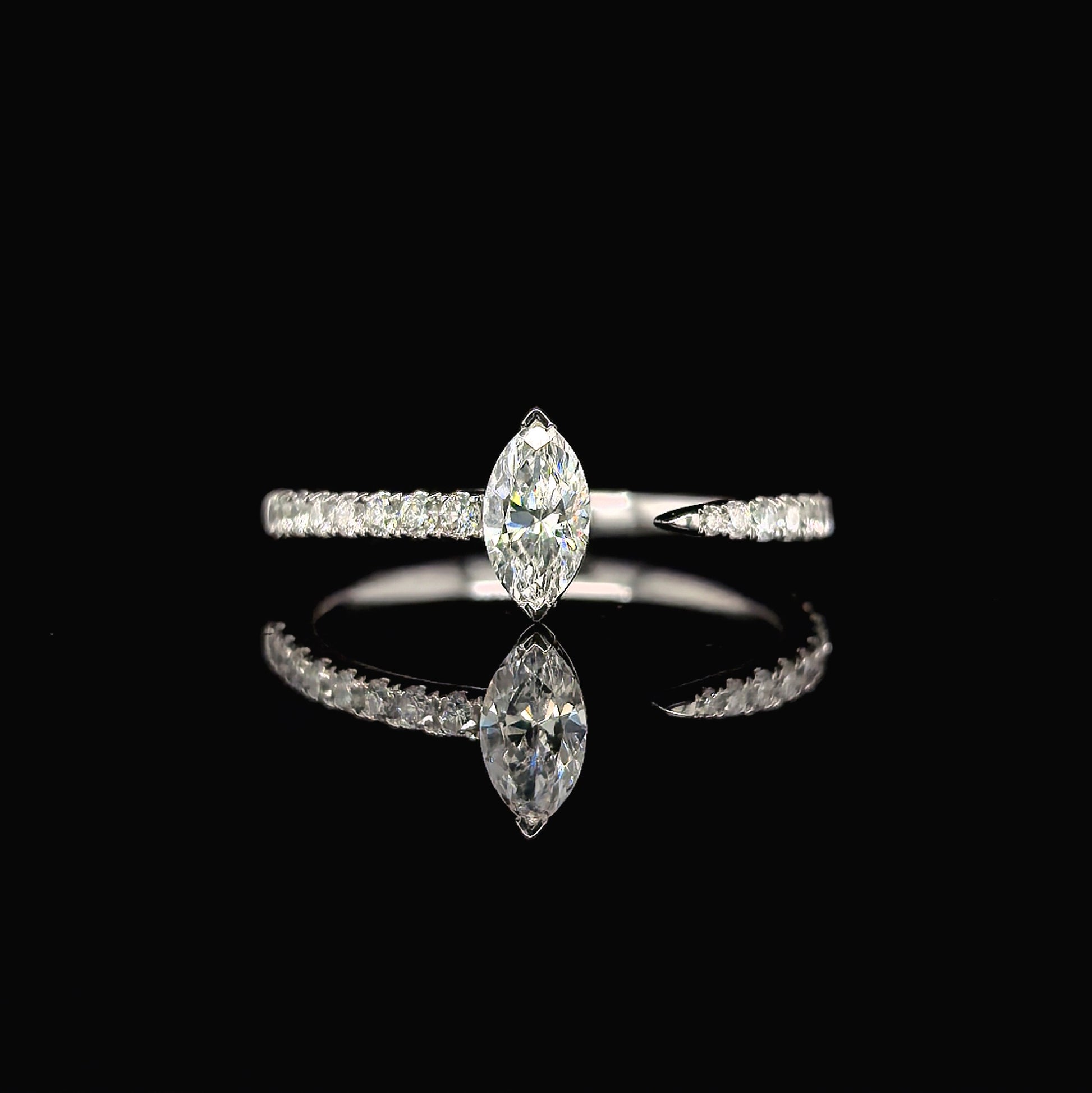 9k W/Gold, 19= 0,50ct Marquise & Round Brilliant Lab Grown Diamond Dress Ring