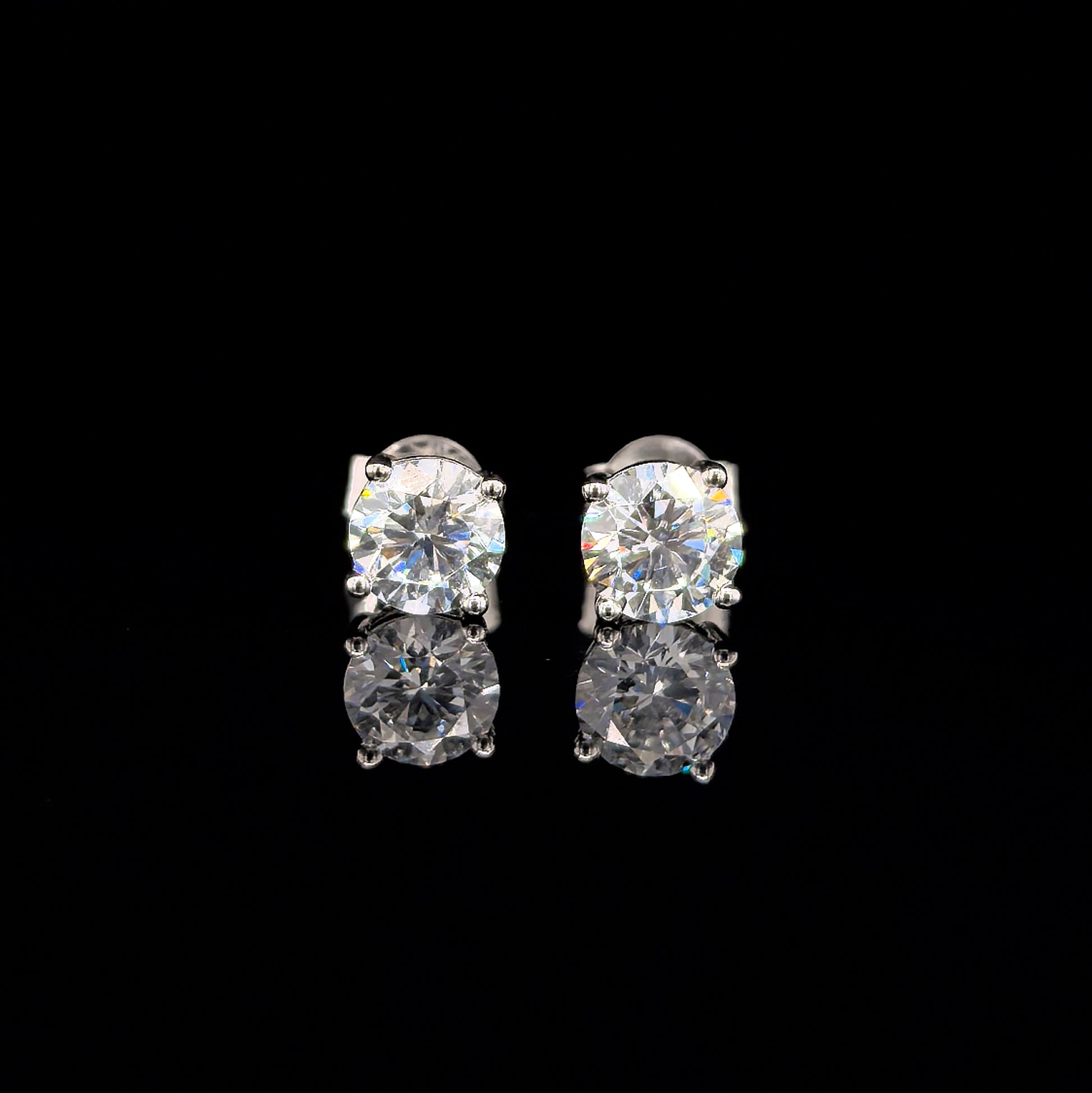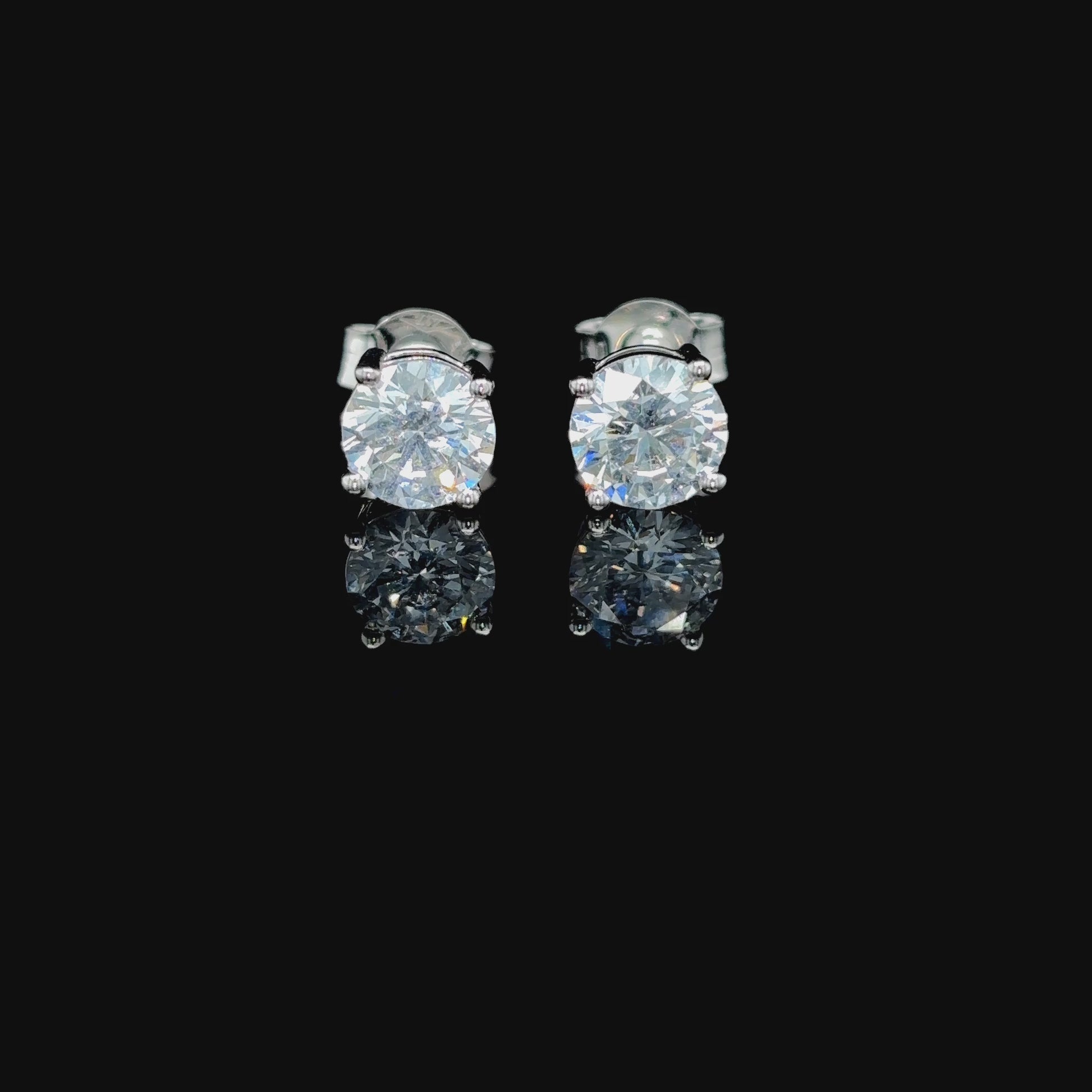 9k W/Gold, 2= 2,63ct Round Brilliant Cut Lab Grown Diamond Stud Earrings