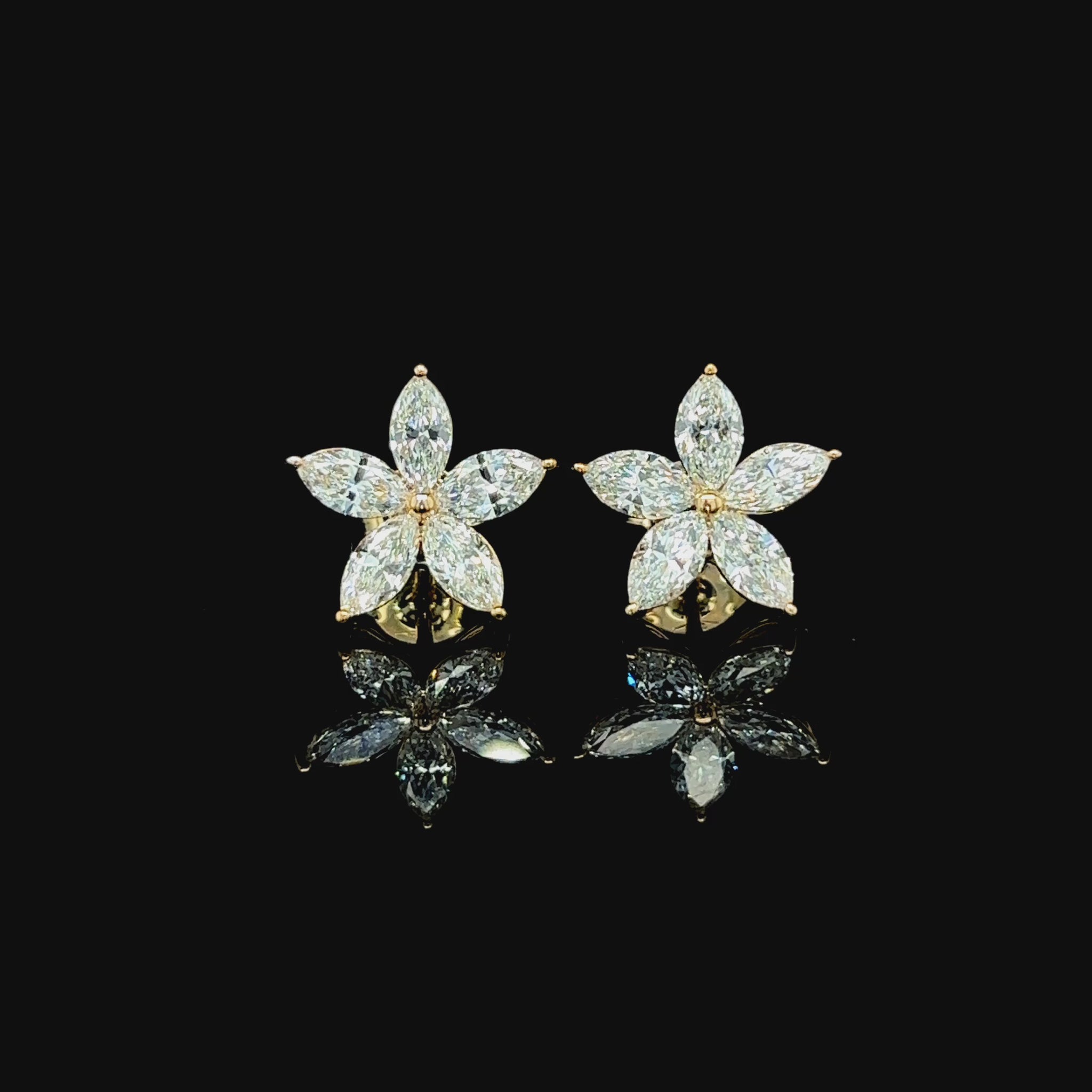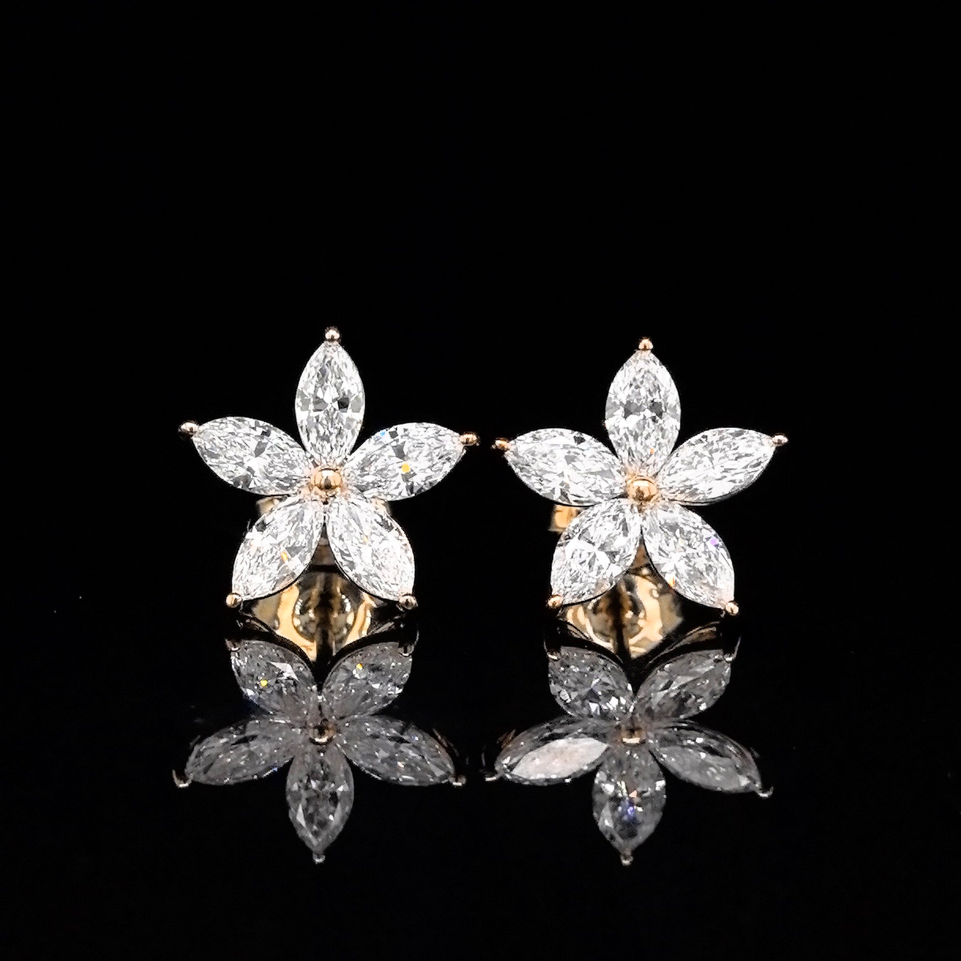 9k Y/Gold, 10= 2,10ct Floral Marquise Cut Lab Grown Diamond Stud Earrings