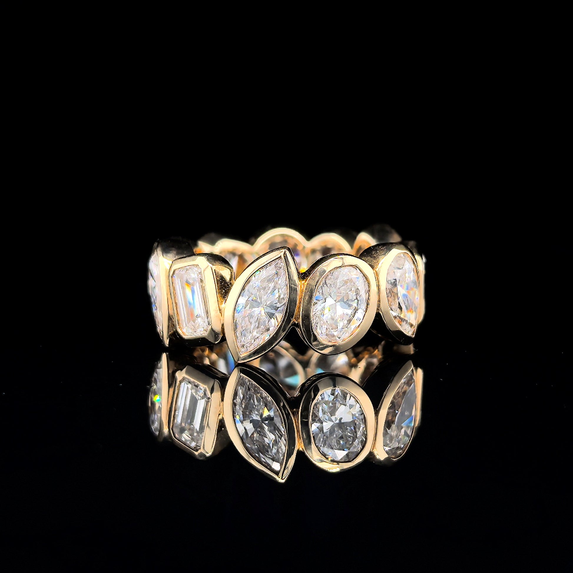 9k Y/Gold, 11= 7,91ct Multi Shape Lab Diamond Eternity Ring