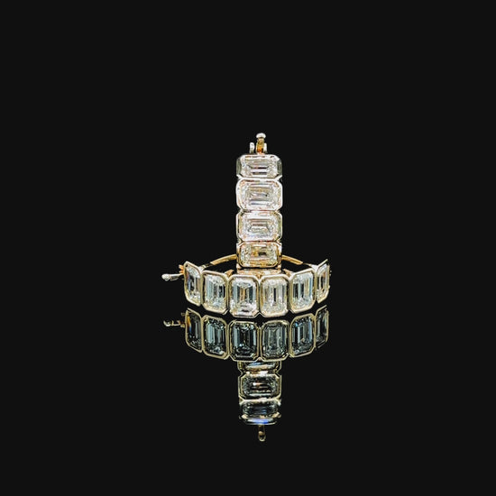 9k Y/Gold, 12=3,12ct Emerald Cut Lab Grown Diamond Hoop Earrings