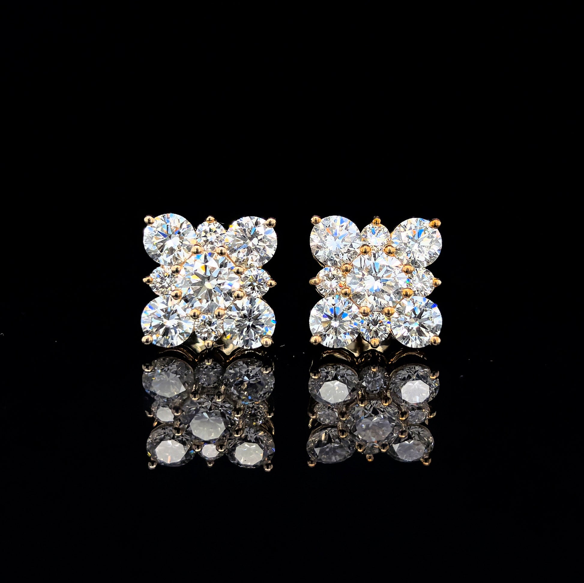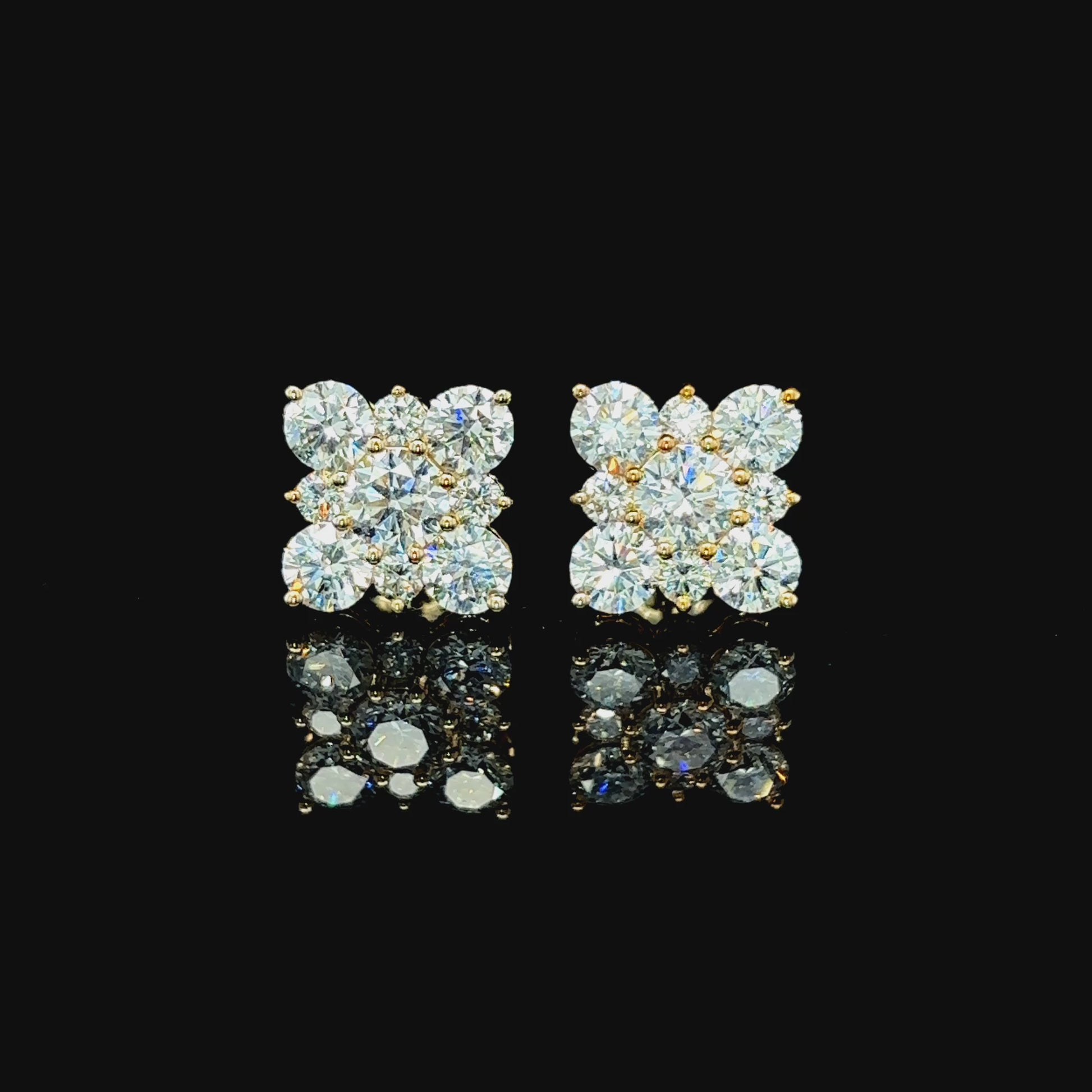 9k Y/Gold, 18= 4,25ct Round Brilliant Cluster Lab Grown Diamond Stud Earrings