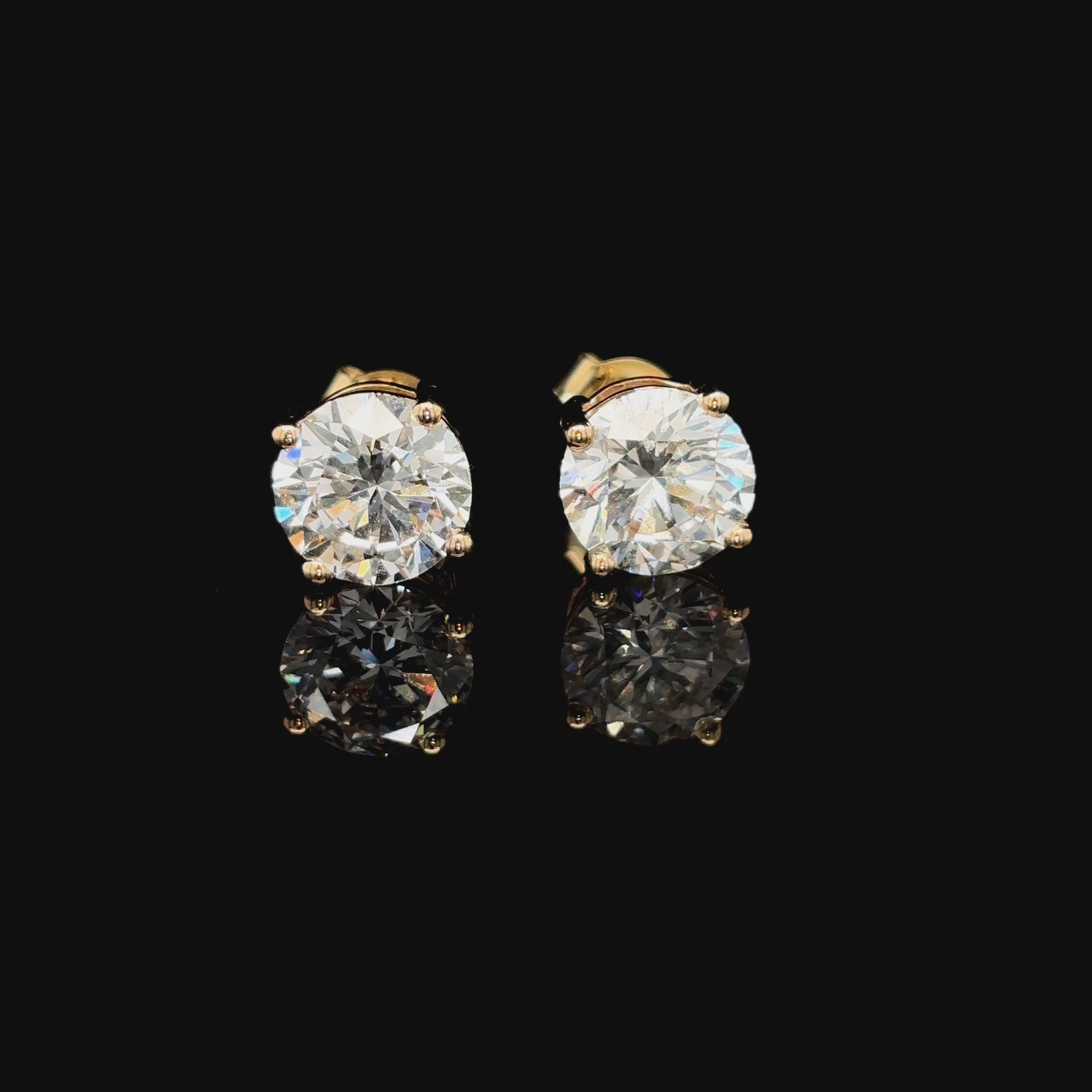 9k Y/Gold, 2= 1,86ct Round Brilliant Lab Grown Diamond Stud Earrings